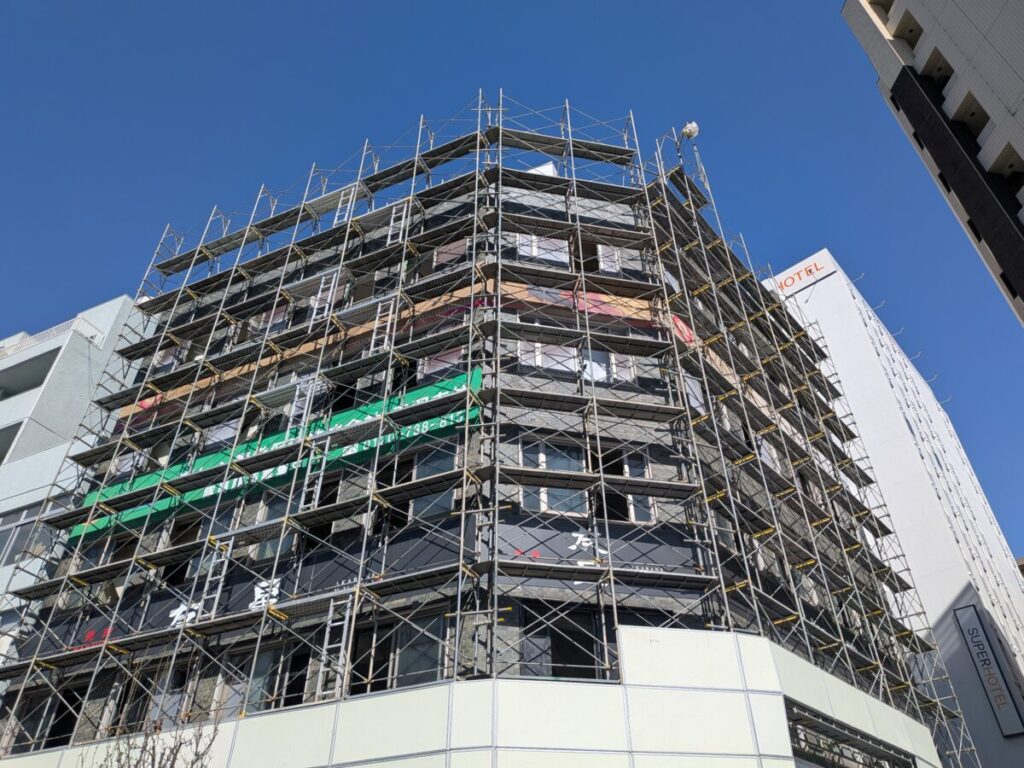 閉館したJRホテルメッツ田端に工事の囲いができていました。