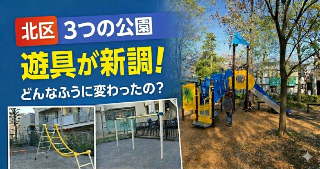 【北区】公園の遊具が新しくなってる!3つの公園でどんなふうに変わったの?