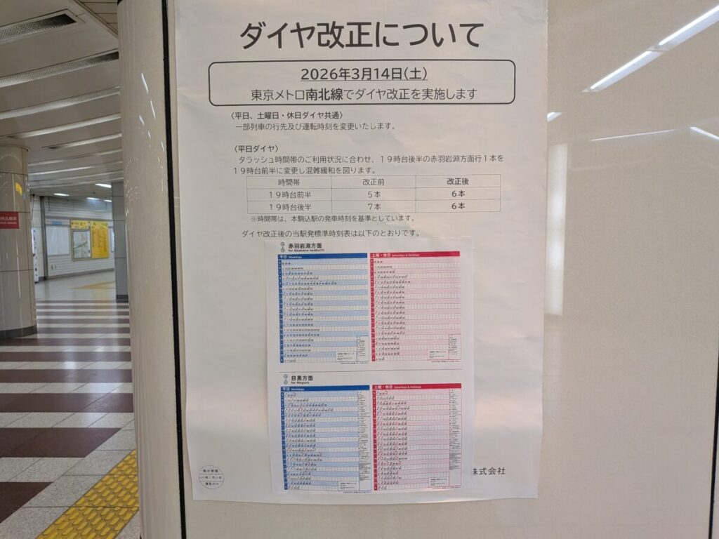 【北区】南北線のダイヤ改正で平日の“19時台が変わる”みたい。王子駅でお知らせでてた!