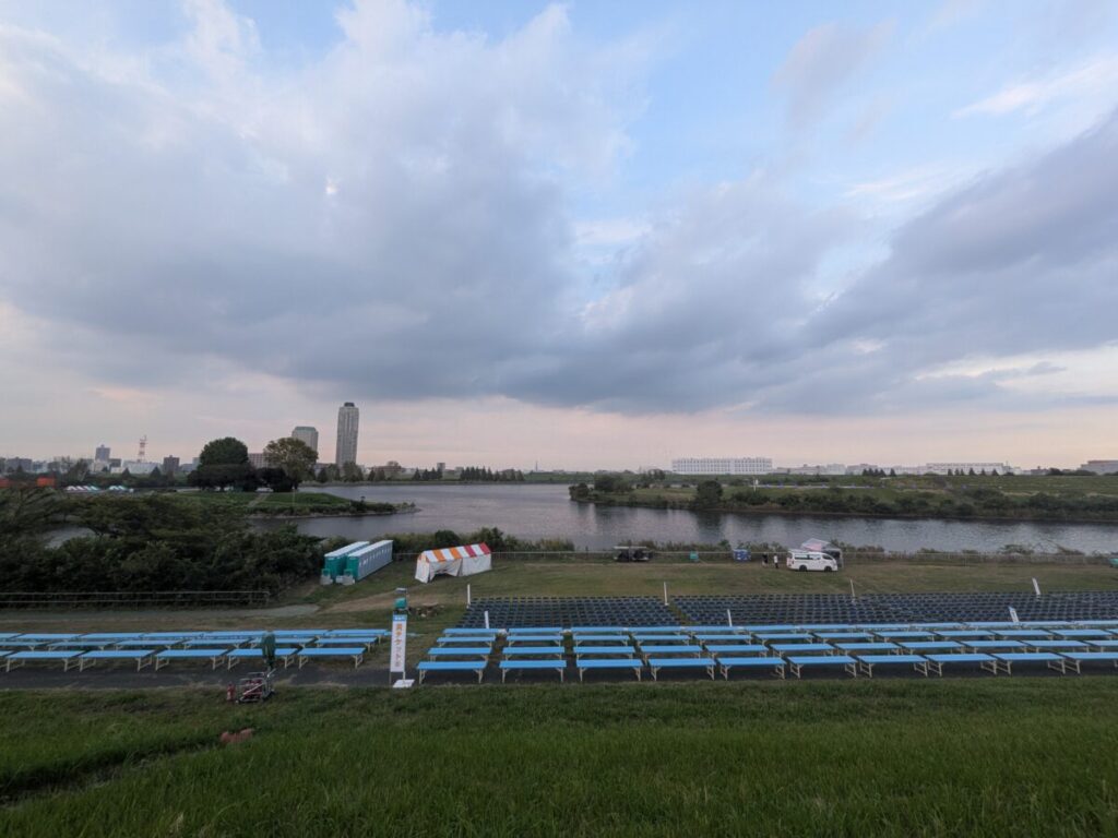 北区花火会前日、川口側の会場の様子です。