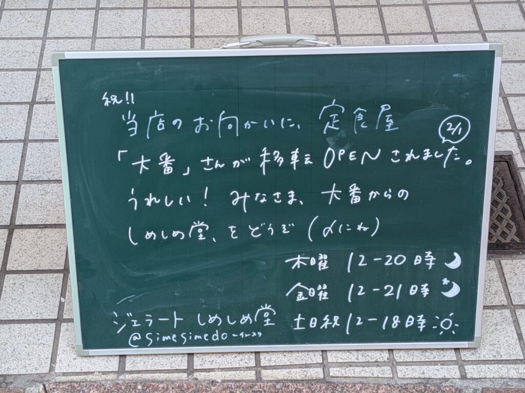 十条のジェラート店「しめしめ堂」が向かいに「大番」移転を喜んでる。